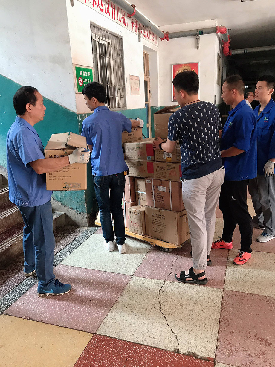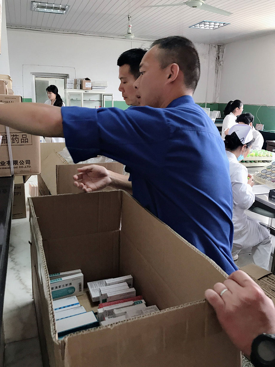 每次藥品全部運(yùn)送到藥材科以后,大家還要和對方老師及時核對藥品,確保藥品的質(zhì)量、數(shù)量、效期、產(chǎn)地、品名、規(guī)格等,確認(rèn)沒有問題才算是配送成功,看著同事們汗流浹背的樣子,真心地為大家點(diǎn)個贊!