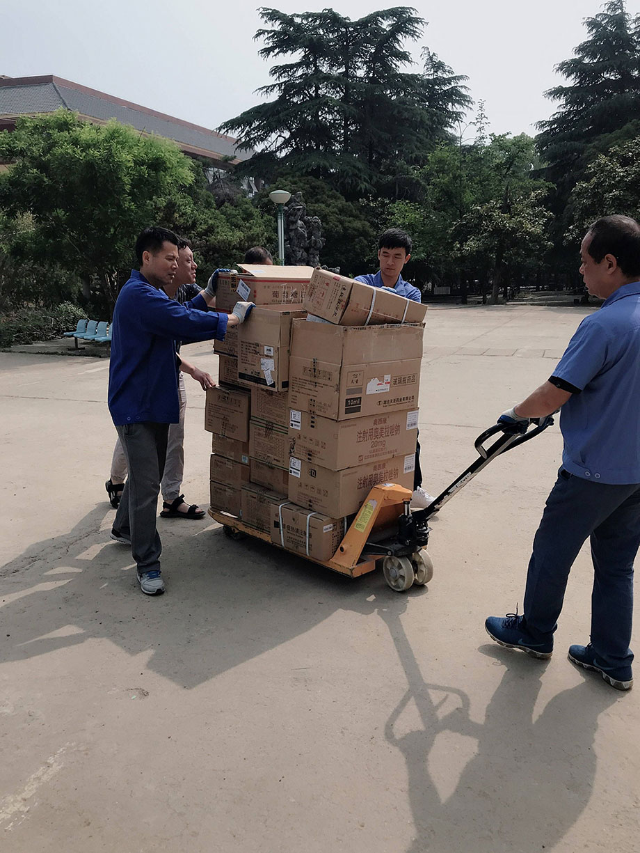 夏日來臨,氣溫升高,道路維修,行車不便。與此同時,藥材科的樓還沒有電梯,為了保證藥品的及時供給,大家不懼高溫、不畏辛勞,用推車把藥品送到樓下,再一件件扛到三樓。
